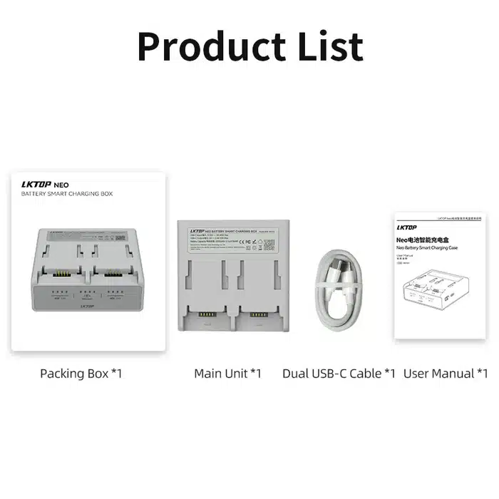 Es dauert nur 28 Minuten, um den ersten Block zu laden, und 56 Minuten, um die beiden Blöcke zu laden. Der 2-Wege-USB-C-Anschluss des LKTOP Neo-Ladegehäuses unterstützt eine maximale Eingangsleistung von bis zu 40 W, die zum schnellen Laden verwendet wird und eine effiziente Stromübertragung gewährleistet.